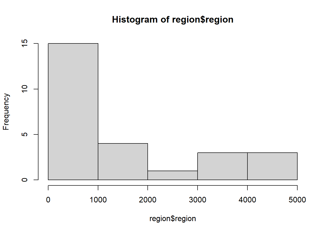 region <- aggregate(communes [,c("region")], by = list(communes$region), length)