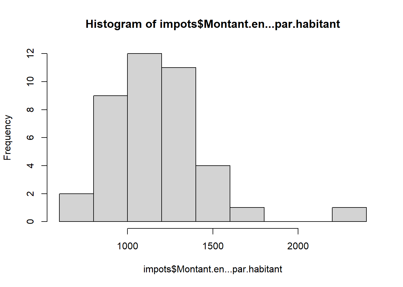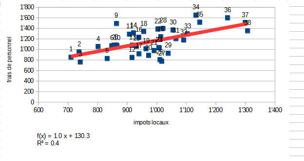 Pour mémoire, l’hypothèse nulle (H0) est l’absence de relation entre impôts locaux et frais de personnel.