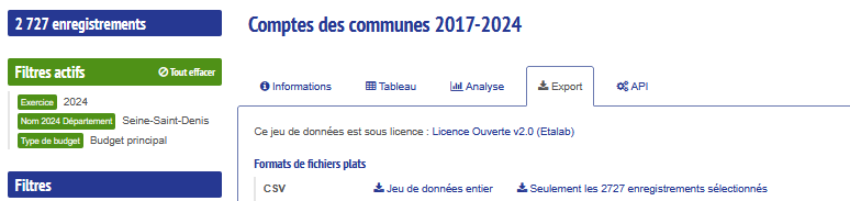On travaille à présent sur un croisement de deux agrégats financiers. On récupère la donnée à partir de l’interface les données de l’ofgl plutôt que celle de la cartographie.