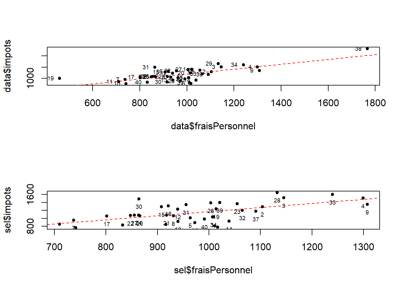 text( data$fraisPersonnel, data$impots,labels = as.character(row.names(sel))