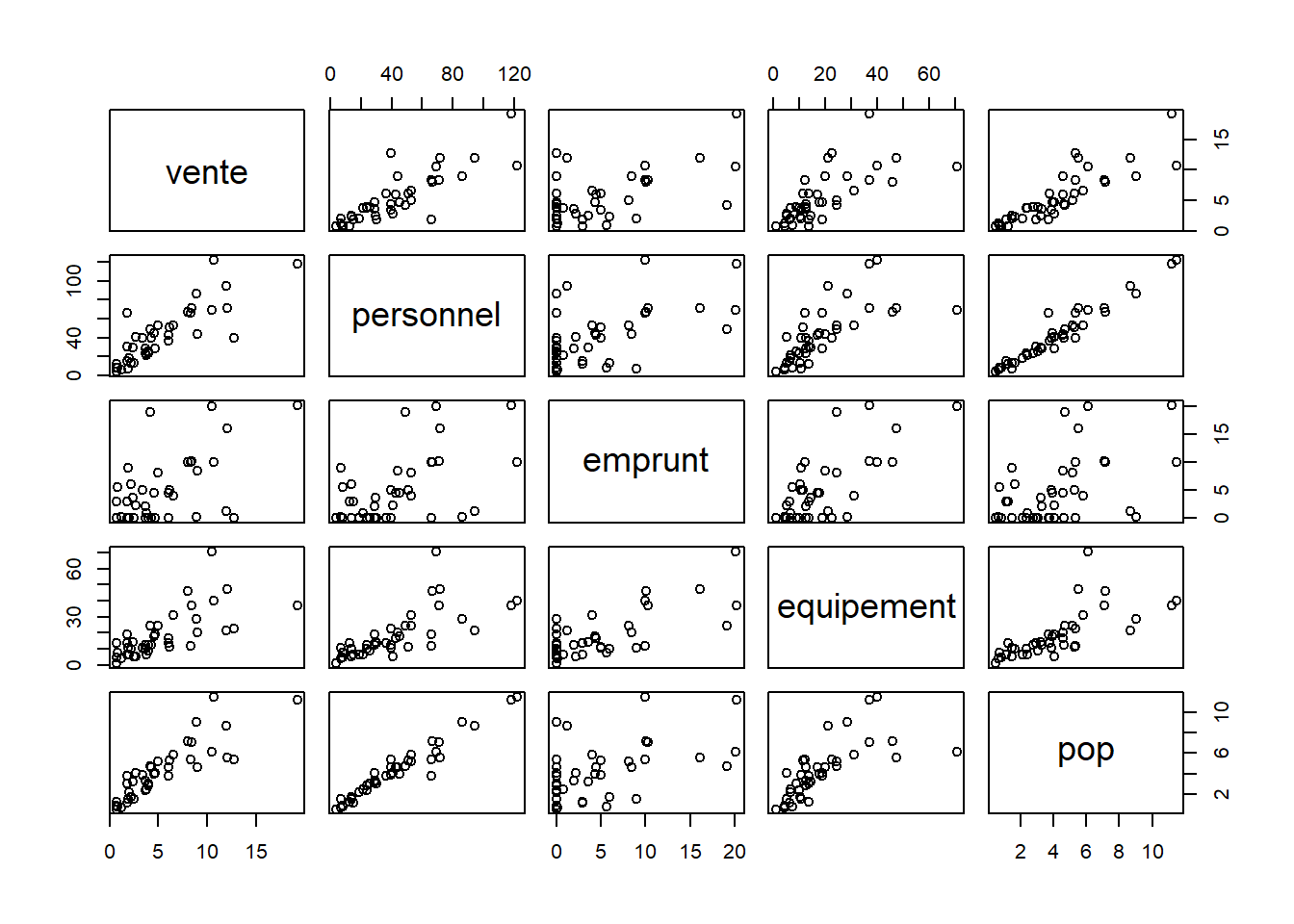Par contre, emprunt et vente / personnel et population ne sont quasiment pas corrélés.